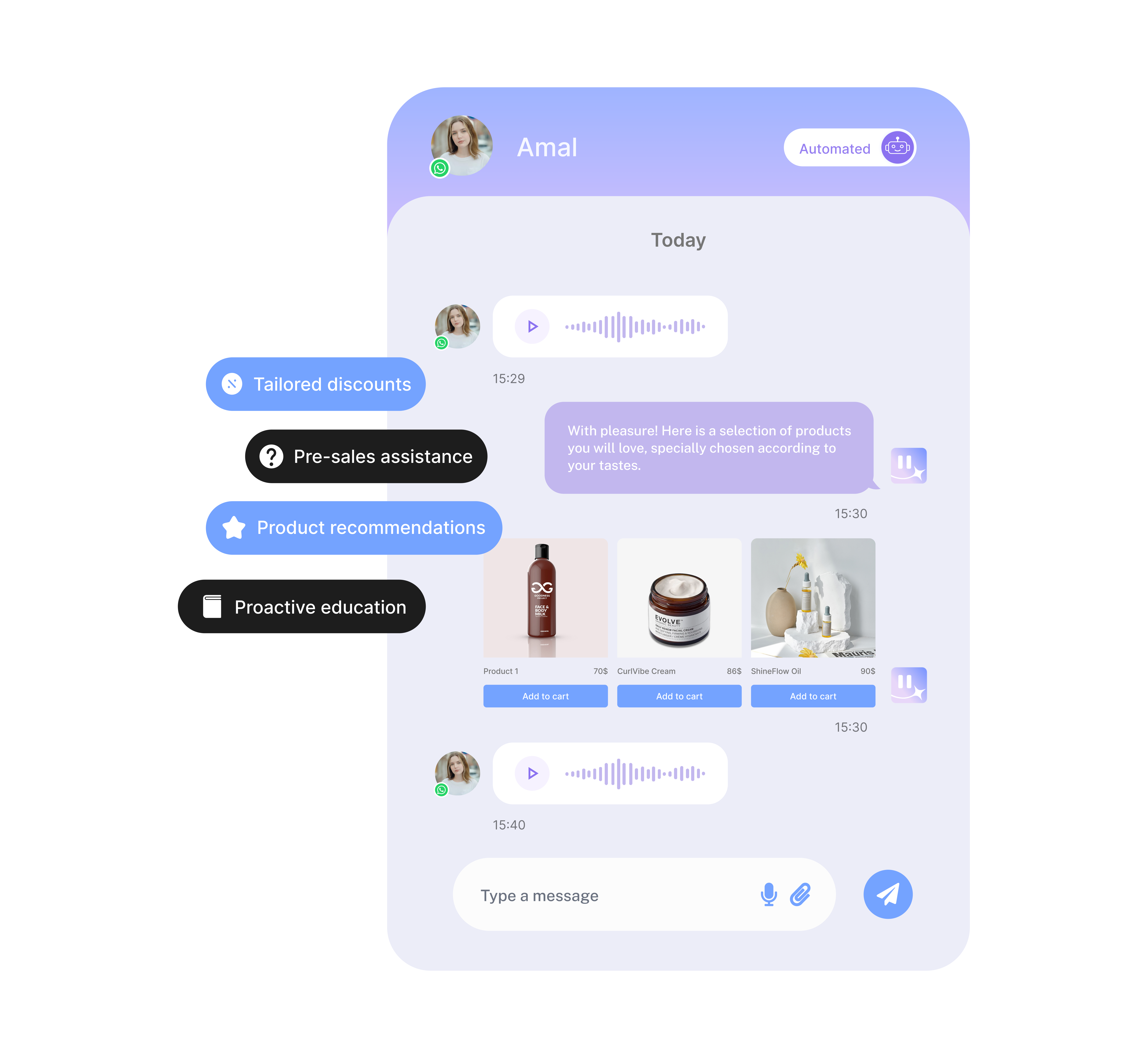 One pattern kept repeating: businesses were drowning in WhatsApp messages, Instagram DMs, and TikTok comments. Every tool on the market could only send canned replies. None of them could actually sell — handle objections, understand a voice note in Derja, recommend the right product, or close a deal at 3 AM.